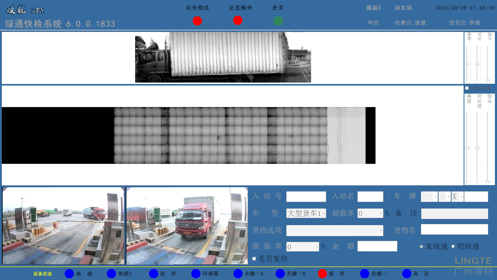 京石公司此次引進(jìn)的X光綠通檢測設(shè)備有五大優(yōu)點(diǎn)。一是檢驗(yàn)速度快。當(dāng)車輛以低于或等于15km/h的速度通過檢測區(qū)時(shí),車輛的射線掃描圖可立即傳送收費(fèi)員的顯示終端上,正常情況下,單車單次檢測時(shí)間不超過10秒。二是節(jié)省人工。由于該設(shè)備提供直觀的圖像便于判斷,工作人員只需驗(yàn)明貨物類別即可,不需要深入到車輛內(nèi)部檢查,既大大減輕了員工的工作量,又提高了車輛通行效率、保障了站口暢通。三是低輻射、低污染。由于其發(fā)射的X射線屬于Ⅲ類射線,為超低能量光線,輻射量約為環(huán)境背景水平的十分之一,對環(huán)境影響幾乎可以忽略,不會對工作人員和過往司乘人身造成傷害。四是安裝施工簡單、占地面積小。該設(shè)備只需在綠通車道兩側(cè)的島頭安裝即可,無需在車道底下施工,不占用站口其他場地空間,不附加任何建筑,可根據(jù)使用現(xiàn)場情況隨時(shí)轉(zhuǎn)場,易于安裝移動。五是費(fèi)用低。該設(shè)備的采購安裝費(fèi)用約為鈷60放射線檢測設(shè)備的60%,并且不屬于特種物質(zhì),后期不會產(chǎn)生昂貴的廢物處置費(fèi)用。