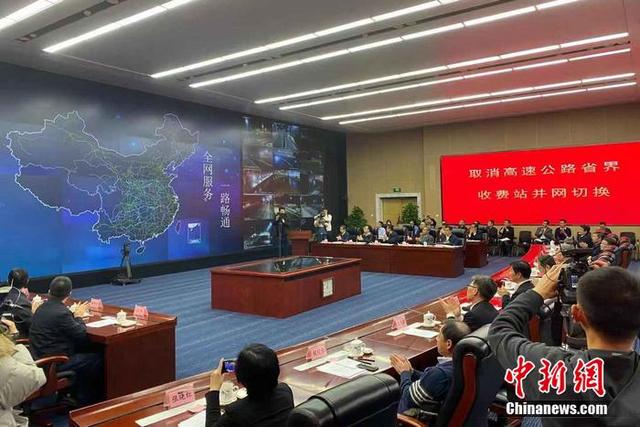 交通運輸部舉行的“取消高速公路省界收費站工程并網(wǎng)切換儀式”現(xiàn)場。 程春雨 攝