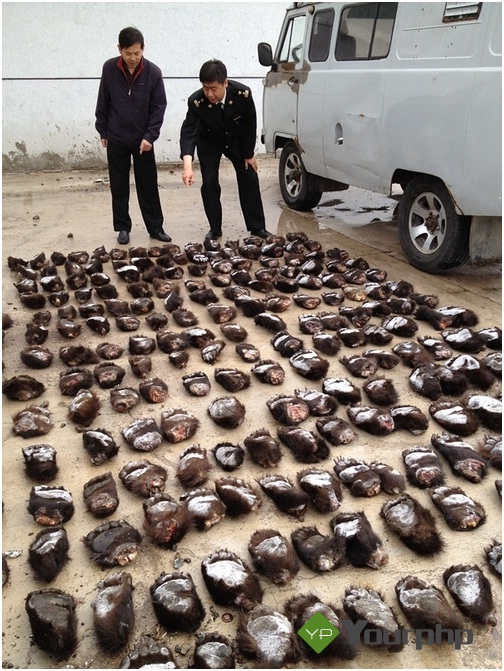 “有毛!”此時,正在拆卸輪胎的工人脫口而出。隨后,血淋淋、肉乎乎的一個黑色熊掌被從輪胎里取了出來。一個、二個……共44個熊掌被一一取出?!白罱K5個輪胎內(nèi)共取出了213個熊掌,大的近四斤、小的僅有4兩重,肯定是小熊的掌。這些人實在是太殘忍了,213只熊掌預(yù)示著至少有54只熊被獵殺?!眳菓c巖憤憤地說。